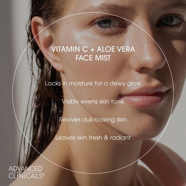 This lightweight facial mist combines Vitamin C and Aloe Vera to instantly refresh, hydrate, and brighten the skin. It helps soothe dryness and revitalize tired-looking skin while delivering a natural glow. Ideal for use throughout the day, it can be applied before or after makeup for a refreshed, dewy finish.